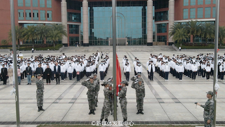 千帆竞驶别旧岁,奋楫笃行拓新途。新学期如约而至,必赢76net线路官网于2022年2月28日早上7:30分别在增城校区中央图书馆及四会校区操场同步进行2021-2022学年第二学期开学升旗仪式。