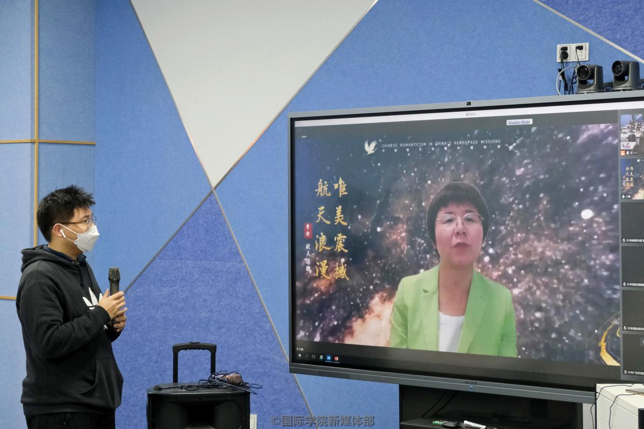 在讲座中,曹静教授分享了我国航天器名字的浪漫、航天浪漫体现出的中国文化自信、航天与百姓生活的紧密联系以及航天之美,带领师生们一同探索中国航天科技的奥秘。曹教授介绍中国飞天梦想的起源,结合图文并茂的PPT分别从名称浪漫、诗意浪漫、书画浪漫、古乐浪漫和节日浪漫五个方面讲述中国式的航天浪漫。