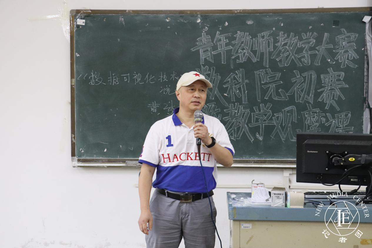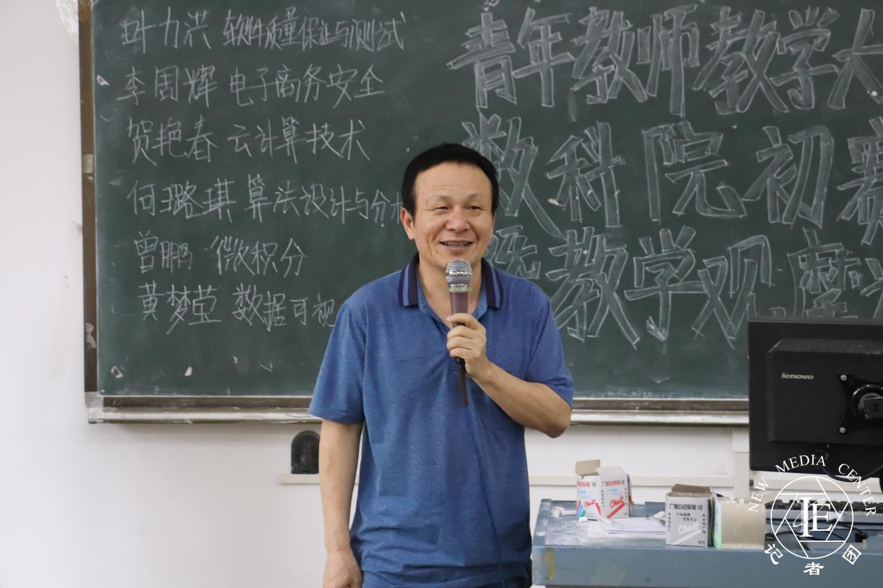比赛伊始,数据科学学院常务副院长赖庆教授对参加本次比赛的教师提出期望与要求。他表示,各位年轻教师在本次竞赛中要充分发挥自己的优势特长,竞赛不同于课堂讲课,需要更加明确课程教学目标和授课的着力点,在竞赛中充分发挥上课的技巧,减少不必要的语言重复,简洁明了,在有限的时间内简明扼要表明学术观点,逻辑要严密、方法要创新、总结要及时。不仅要了解学生,还要学会调动学生课堂的积极性和主动性,“上课如同表演,好的演员才能创造出好的电影”。