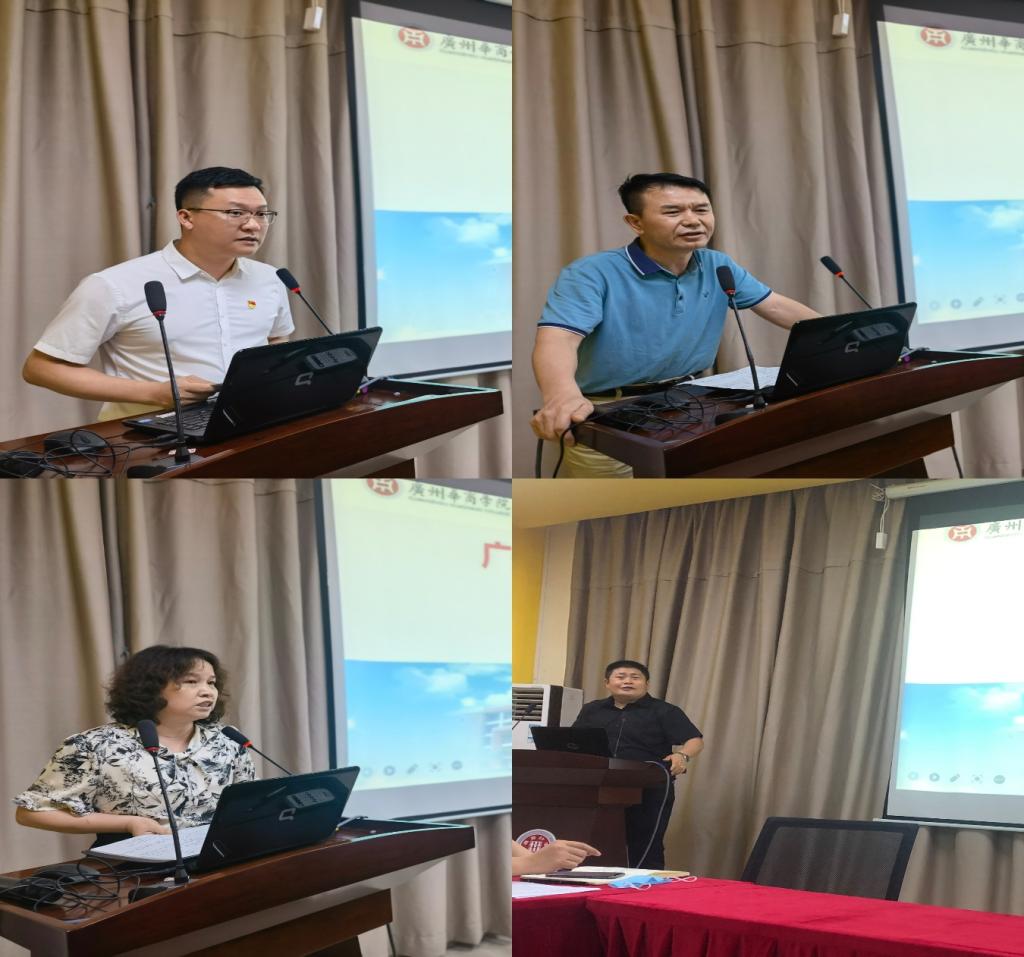 紧接着,学院领导进行工作汇报。陈洋广书记总结了前半学期的学生活动、党务团学与辅导员队伍建设工作,并宣读学院毕业生升学就业形势稳中向好、多名学生考取国内外硕士研究生的喜讯。巴雅尔副院长从日常教学管理、学院教学竞赛成绩、专升本教学计划、下阶段教学工作计划四方面进行了汇报。杨旻副院长汇报了学院教科研工作成果、青年博士班课程开展情况、科研讲座安排及省一流课程建设等工作。周书域副院长从教师引进、职称评审、产教融合、咨询服务及宣传工作等方面进行了汇报。