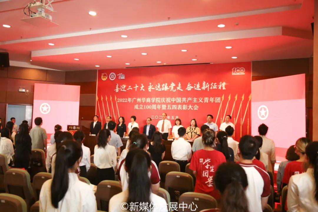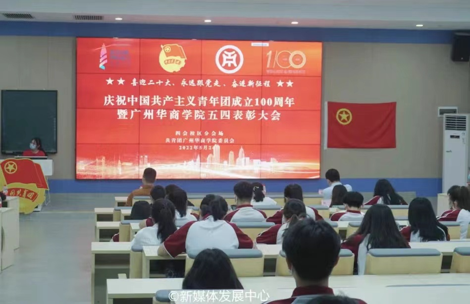 为深入学习宣传贯彻习近平总书记在庆祝中国共产主义青年团成立100周年大会上的重要讲话精神,引导广大华商青年争做理想远大、信念坚定、刻苦学习、锐意创新、敢于斗争、善于斗争、艰苦奋斗、无私奉献、崇德向善、严守纪律的模范,以更加昂扬进取的精神面貌为党的二十大胜利召开献礼,推动共青团思想引领取得更加扎实的工作成效,5月24日中午,校团委在国际会议中心四楼报告厅举行“喜迎二十大 永远跟党走 奋进新征程”必赢76net线路官网庆祝中国共产主义青年团成立100周年大会暨2022年五四表彰大会。根据校园疫情防控常态化要求,本次大会设立增城校区主会场,四会校区分会场。采用线上线下结合方式,同步进行网络直播,供华商师生观看学习。