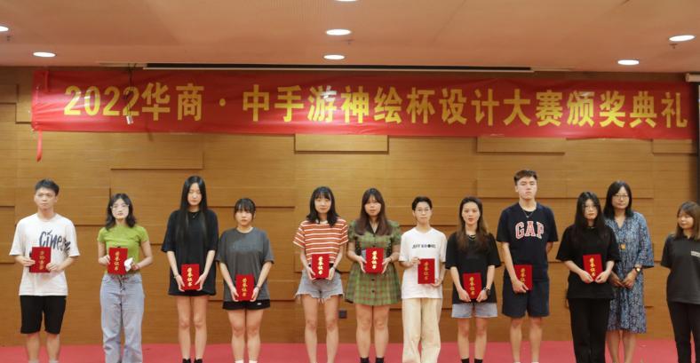 为表彰华商·中手游神绘杯设计大赛获奖师生,更好的培养高素质和富有创新思维的复合型设计人才,加强校企合作,进一步构建高质量产教融合体系,6月27日下午,2022华商·中手游神绘杯设计大赛颁奖典礼在图书馆报告厅举行。出席本次颁奖典礼的嘉宾有:中手游深圳市神绘数码技术有限公司总经理骆俊、商务总监任妍玲、美术总监刘畅,彼方学院校长林嘉浩、资深行业导师占博文,华商教育集团副董事长廖伊曼、必赢76net线路官网副校长王列耀、人文学部常务副主任陈少华、传播与传媒学院院长赵维江、国际交流处处长王文忠,以及各学院教师代表。