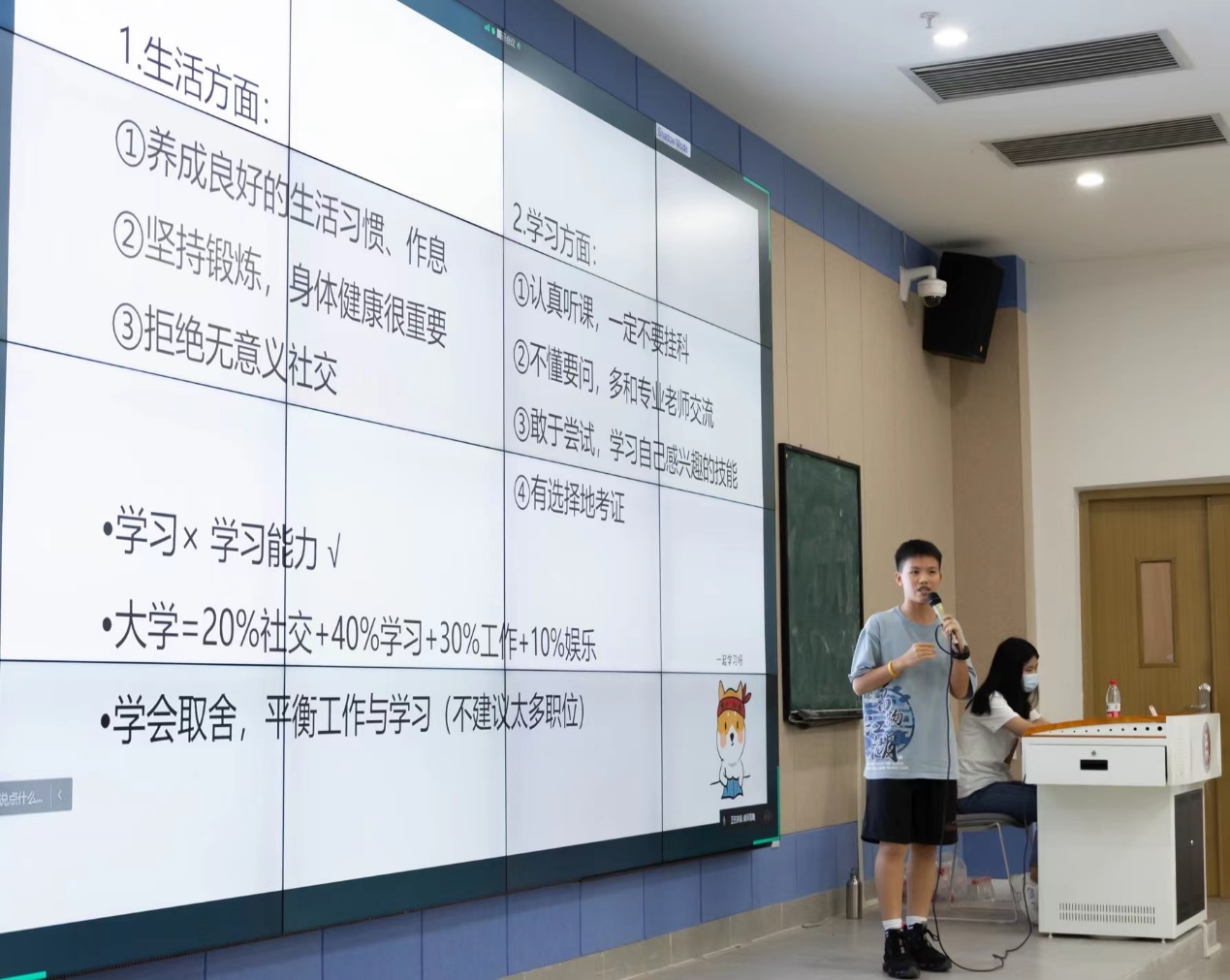 辅导员曾庆威老师作出会议总结,老师结合自身在校经历说道,大学四年,可以说是人生中最宝贵的时光之一,同时也是积攒能力、蓄积能量的时光。因此,他鼓励新生们要在不影响学习的前提下多参加社团活动,多参与部门生活,锻炼自身能力。最后,曾老师祝愿同学们能有一段充满美好回忆的大学生活。