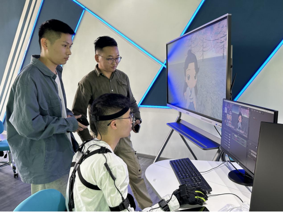 参与实验室建设的工程负责人向领导和老师们相信介绍了元宇宙系统的设施和软件应用,当场对相关老师进行动作捕捉和虚拟现实生成演示和培训。学院领导对参与元宇宙实验室建设的校方管理部门和参建单位表示感谢。