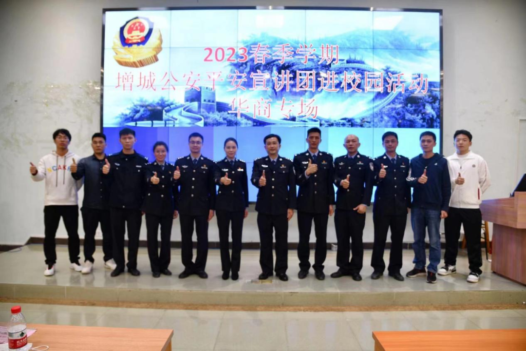 二月已破三月来,平安逢春进华商。2月28日晚,增城区公安分局在必赢官网组织召开2023年春季学期增城公安平安宣讲团进校园活动(华商专场)。活动通过“视频直播,线下活动”的方式,现场设置了一个主会场,近200个分会场,让近两万华商学子在课堂同上 “开学安全第一课”。雁塔派出所郭璀所长、禁毒大队邓丽滨副大队长、雁塔派出所刘齐心副所长、华商学院校园服务中心邱作成副总监、后勤保卫办公室梁艳老师以及区公安分局网警大队、刑警大队、禁毒大队、交警大队的民警出席了本次活动。