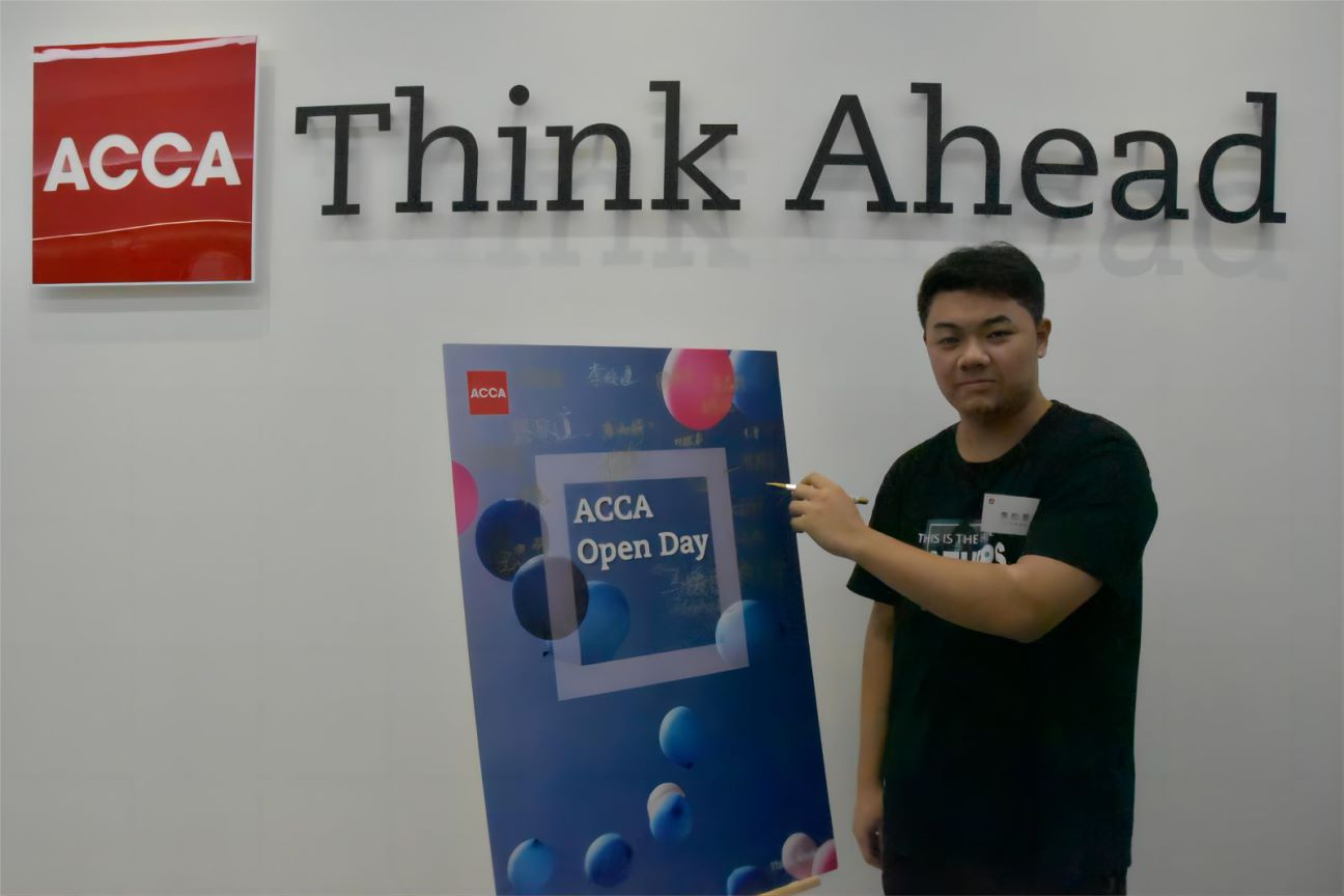 活动伊始,同学们在主题背景板签名合影留念并领取专属名牌,同时收到了一份来自ACCA华南办公室精心准备的纪念品小礼物。