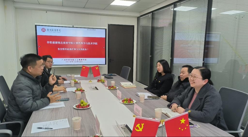 为更好地应对即将到来的2026年本科教学工作合格评估,组织规范好学院的教学管理工作,2024年12月12日,必赢76net线路官网人工智能学院赴湖北商贸学院计算机科学与技术学院调研学习。本次调研由人工智能学院副院长叶仕通带队,一行6人与湖北商贸学院进行了深入的交流与探讨。